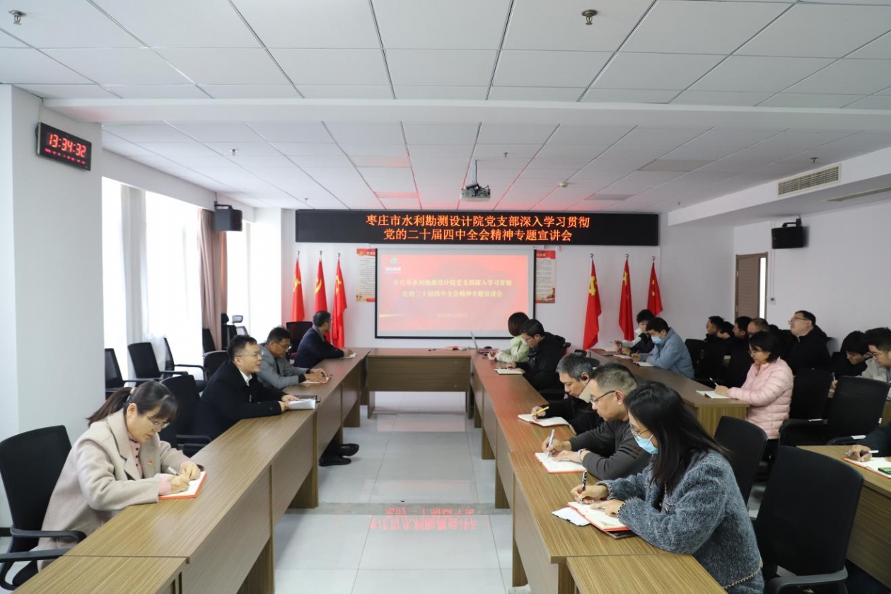 2025年12月8日,为深入学习宣传贯彻党的二十届四中全会精神,切实把全体干部职工的思想和行动统一到全会决策部署上来,凝聚起推动水利设计事业高质量发展的强大合力,设计院组织全体党员开展“学习贯彻党的二十届四中全会精神”专题宣讲活动。